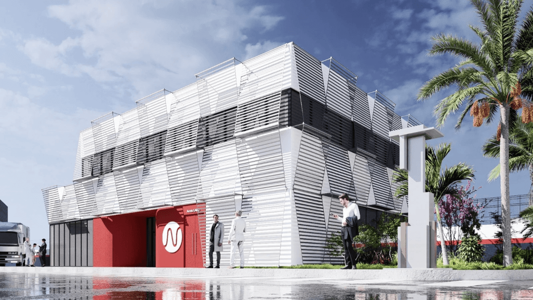 Le projet s’implante en interface directe avec le flux logistique du site, tout en valorisant l’entrée laboratoire comme signal identitaire. Une peau métallique protectrice, modulée selon l’ensoleillement, enveloppe les volumes avec une écriture industrielle affirmée mais élégante.
