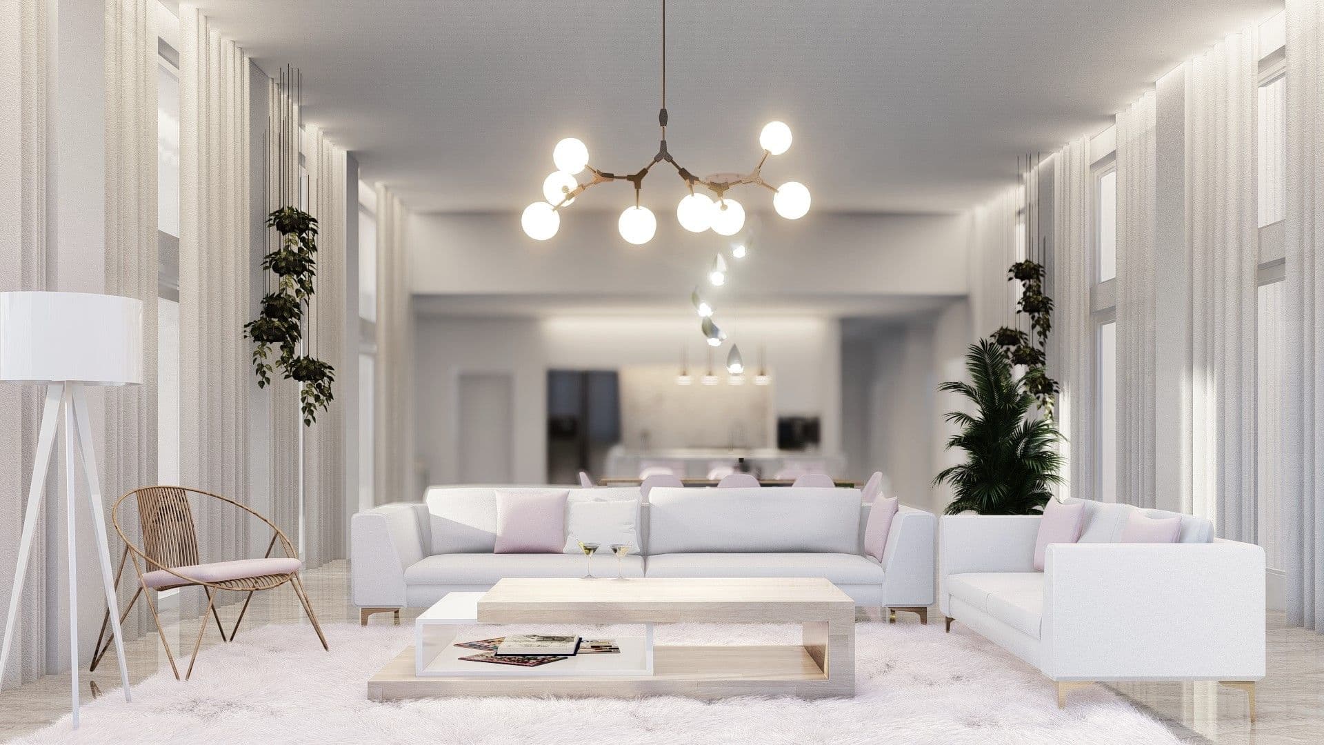 En entrant dans cette somptueuse villa, on est immédiatement enveloppé par une atmosphère de sérénité et d'élégance moderne. Le vaste espace lumineux, baigné de lumière naturelle grâce aux grandes baies vitrées, invite à la tranquillité et à la réflexion. Les murs blancs immaculés se fondent harmonieusement avec les canapés moelleux aux tons pastel, créant un contraste doux et apaisant. Les formes épurées du mobilier, à la fois géométriques et organiques, se marient parfaitement avec les touches de bois clair et les plantes vertes suspendues, insufflant une touche de nature et de fraîcheur. Le tapis duveteux au sol ajoute une dimension tactile et confortable, propice à la détente. Le lustre moderne, avec ses globes lumineux suspendus comme des étoiles flottantes, complète cet ensemble raffiné. Ce cadre, à la fois inspirant et apaisant, offre un environnement idéal pour le travail, où chaque détail a été pensé pour favoriser la concentration et la créativité.