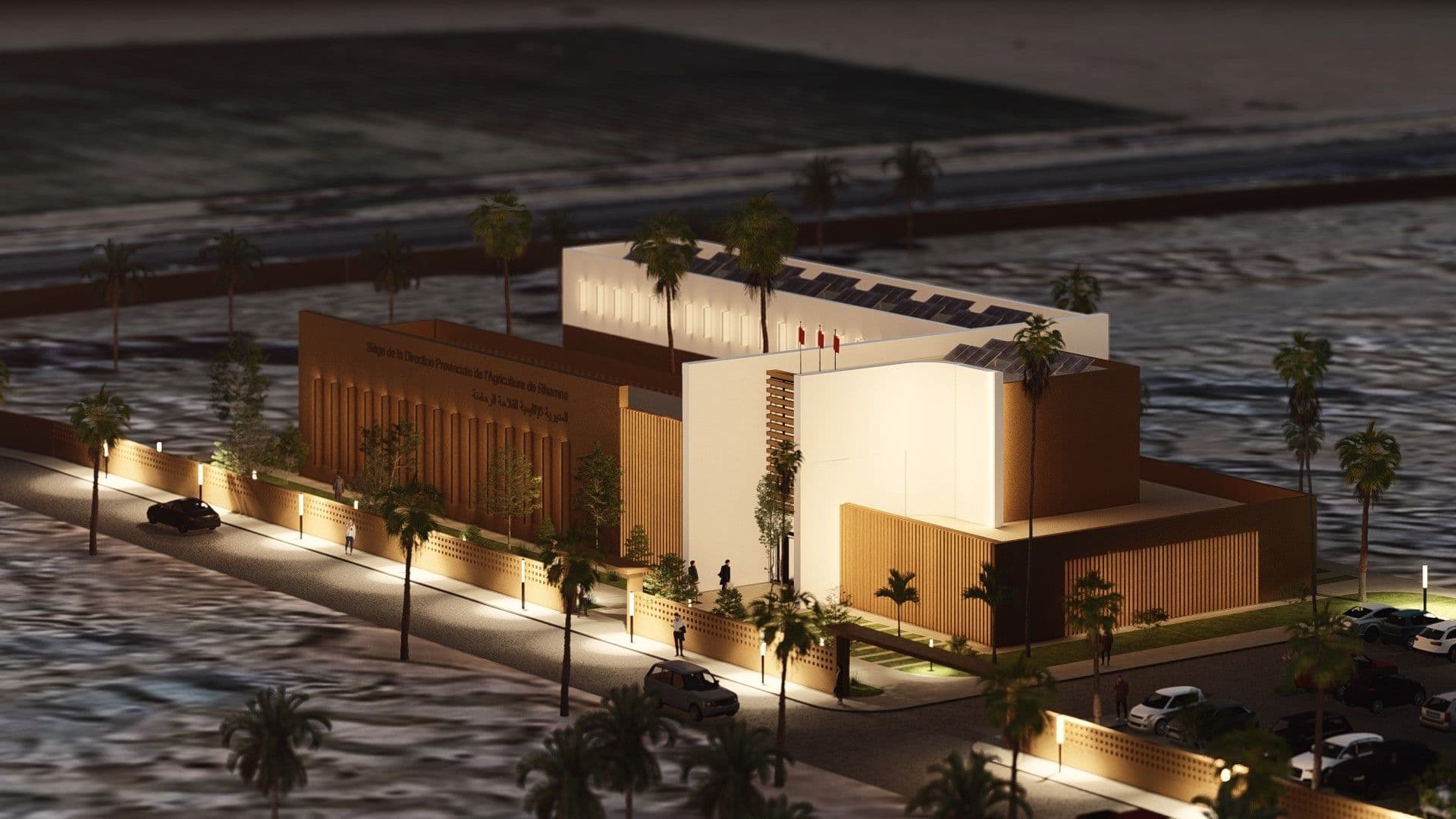 Le projet de la direction provinciale de l’Agriculture à Rehamna s’articule autour d’une composition volumétrique marquée par des formes massives, évoquant la robustesse et la simplicité des constructions locales. Les volumes principaux, conçus avec des matériaux bruts rappelant la terre, créent un lien fort avec le sol et l’environnement naturel. Ces blocs imposants, ancrés dans le paysage, rappellent les structures traditionnelles de la région, tout en offrant une interprétation contemporaine de l’architecture vernaculaire. Au cœur de cette composition solide, un volume central se distingue par sa courbe douce, qui contraste avec la rigueur des autres formes. Cette courbe invite les visiteurs à pénétrer dans l’espace, créant un mouvement fluide et accueillant vers l’entrée principale. Elle incarne un geste d’ouverture, renforçant l’accessibilité tout en apportant une dimension dynamique à l’ensemble architectural. L’agencement des volumes est pensé pour être en parfaite harmonie avec la nature environnante. Les formes et les matériaux dialoguent avec le paysage, intégrant le bâtiment de manière respectueuse et cohérente dans son cadre. Les espaces libres entre les blocs évoquent les champs agricoles qui entourent le site, offrant des zones de respiration et des perspectives ouvertes sur la nature. L’utilisation de matériaux locaux et durables, en harmonie avec les couleurs et textures naturelles, renforce l’idée d’une architecture qui tire sa force et son inspiration de la terre de Rehamna. En alliant la puissance des formes massives et l’élégance de la courbe centrale, le projet trouve un équilibre entre tradition et modernité, tout en s’intégrant de manière subtile et durable dans son environnement naturel.