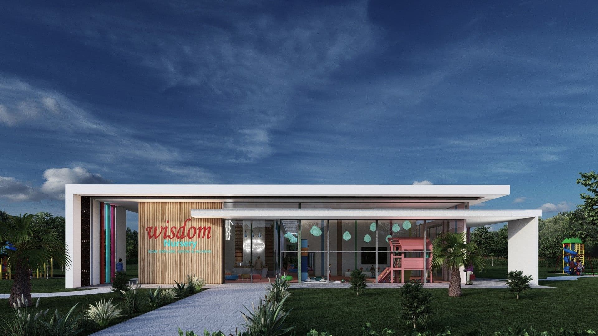 École maternelle, avec son design réfléchi, offre un cadre moderne et accueillant pour le développement des enfants. À l'extérieur, des lignes géométriques simples et des matériaux naturels comme le bois et le verre sont mis en valeur par de grandes baies vitrées, permettant une abondante entrée de lumière naturelle. À l'intérieur, un design minimaliste prédomine avec des murs blancs parsemés de formes organiques et colorées en tons pastel, créant une atmosphère apaisante. Les meubles et structures de jeu aux teintes vives ajoutent une touche stimulante, tandis que des niches murales et des éléments ludiques encouragent l'exploration. Des nuages suspendus au plafond apportent une dimension rêveuse. Ensemble, ces éléments créent un environnement sécurisant et inspirant, parfait pour l'épanouissement et le bien-être des enfants.